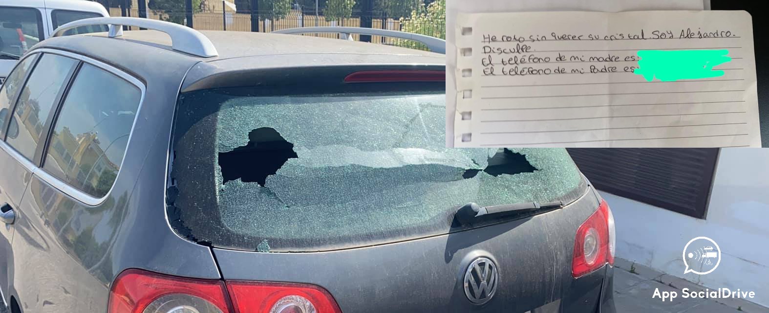 “He roto sin querer su cristal. Soy Alejandro. Disculpe”, decía la nota escrita con letra infantil que acompañaba el desperfecto. Como si fuera una escena salida de una película, el pequeño Alejandro también había dejado los números de teléfono de sus padres para que el dueño del coche pudiera contactar con ellos. No huyó ni se escondió: simplemente escribió la verdad.